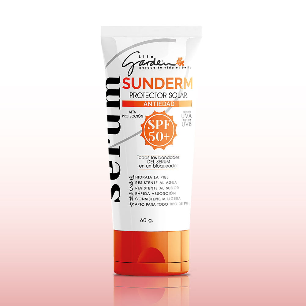 ¡Protege tu Piel y Luce Radiante con nuestro Protector Solar SUNDERM! En Life Garden, sabemos que la protección solar es esencial para mantener una piel hermosa y saludable. Te presentamos SUNDERM, un innovador protector solar que combina la alta protección de SPF 50+ con los beneficios de un sérum rejuvenecedor, ¡ideal para todo tipo de piel! Alta Protección Total Nuestra fórmula avanzada ofrece una defensa superior contra los dañinos rayos UVA y UVB, ayudando a prevenir el envejecimiento prematuro y las quemaduras solares. Con SUNDERM, puedes disfrutar del sol con la tranquilidad de estar protegido. Efecto Antiedad Enriquecido con ingredientes poderosos como el Aloe Vera, la Vitamina E y la Manzanilla, nuestro protector solar no solo protege, sino que también nutre e hidrata tu piel. Estos ingredientes trabajan en sinergia para reducir la apariencia de arrugas, manteniendo tu piel firme y elástica.