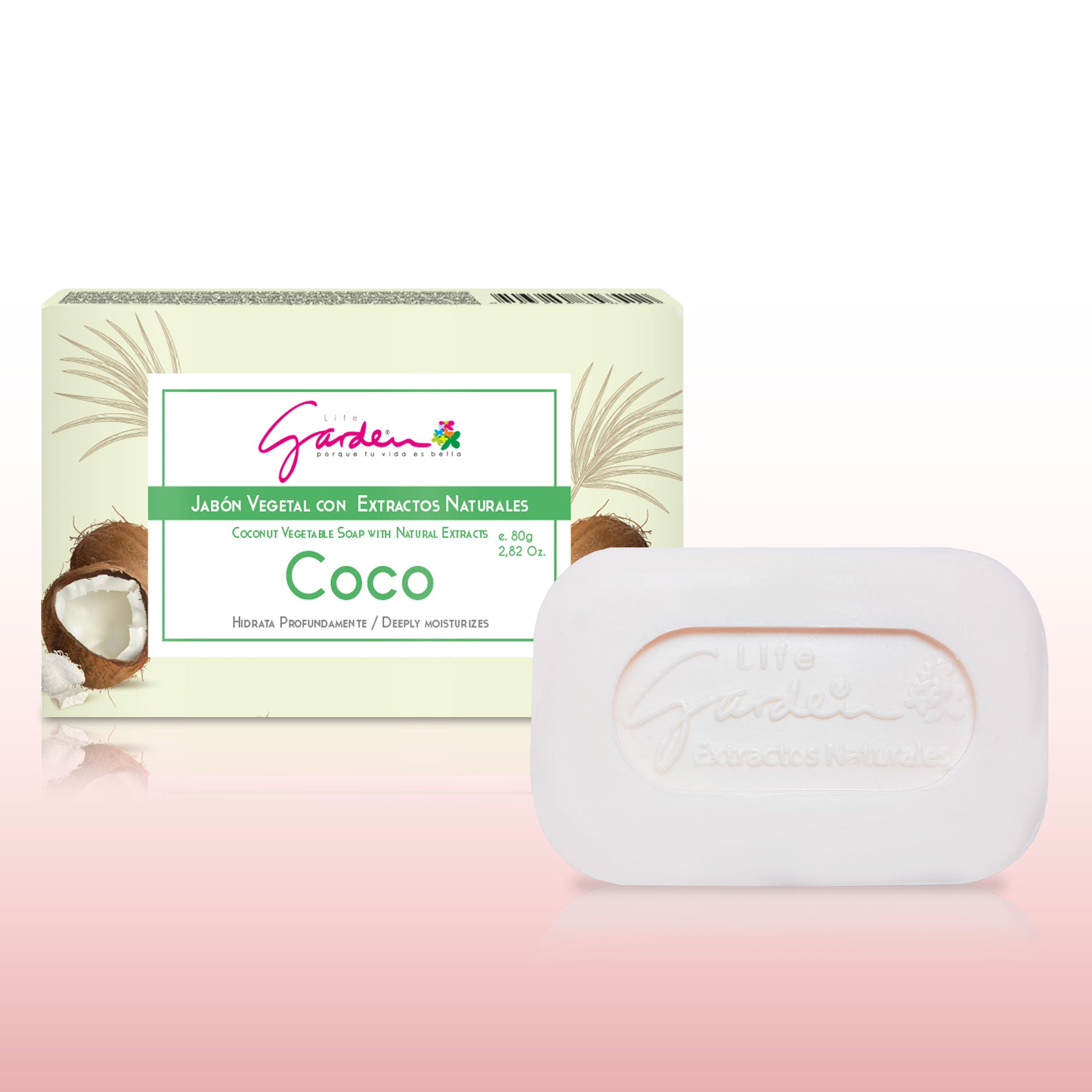 En Life Garden, sabemos que tu piel merece lo mejor. Te presentamos nuestro Jabón Vegetal con Extractos Naturales de Coco, elaborado con base de palma vegetal y formulado con ingredientes y extractos naturales de alta calidad. ¡Ideal para todo tipo de piel y perfecto para una experiencia de limpieza que nutre y protege!